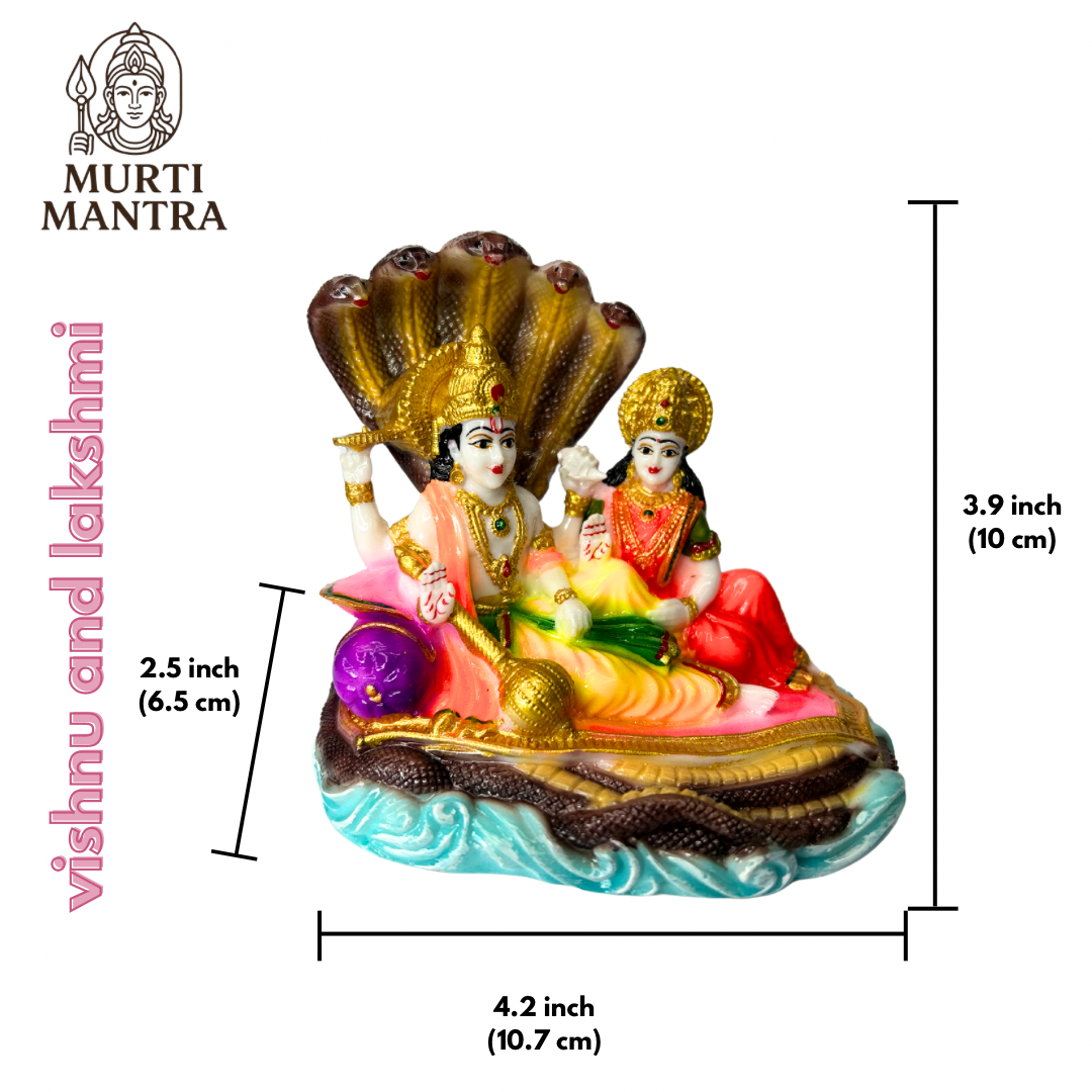Beautiful multicoloured hand painted Vishnu Lakshmi on a snake